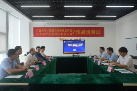 党委书记钟诚、院长武新章、常务副院长张振荣、党委副书记邓珍琪和学院办公室主任胡强,先后分别到计算机科学与技术专业2005级校友胡志超创办的广西迅驰信息科技有限公司和网络工程专业2005级校友梁检创办的广西码农信息科技有限公司走访,开展参观考察和座谈交流活动,并举行产学研合作基地和就业实习基地揭牌仪式。