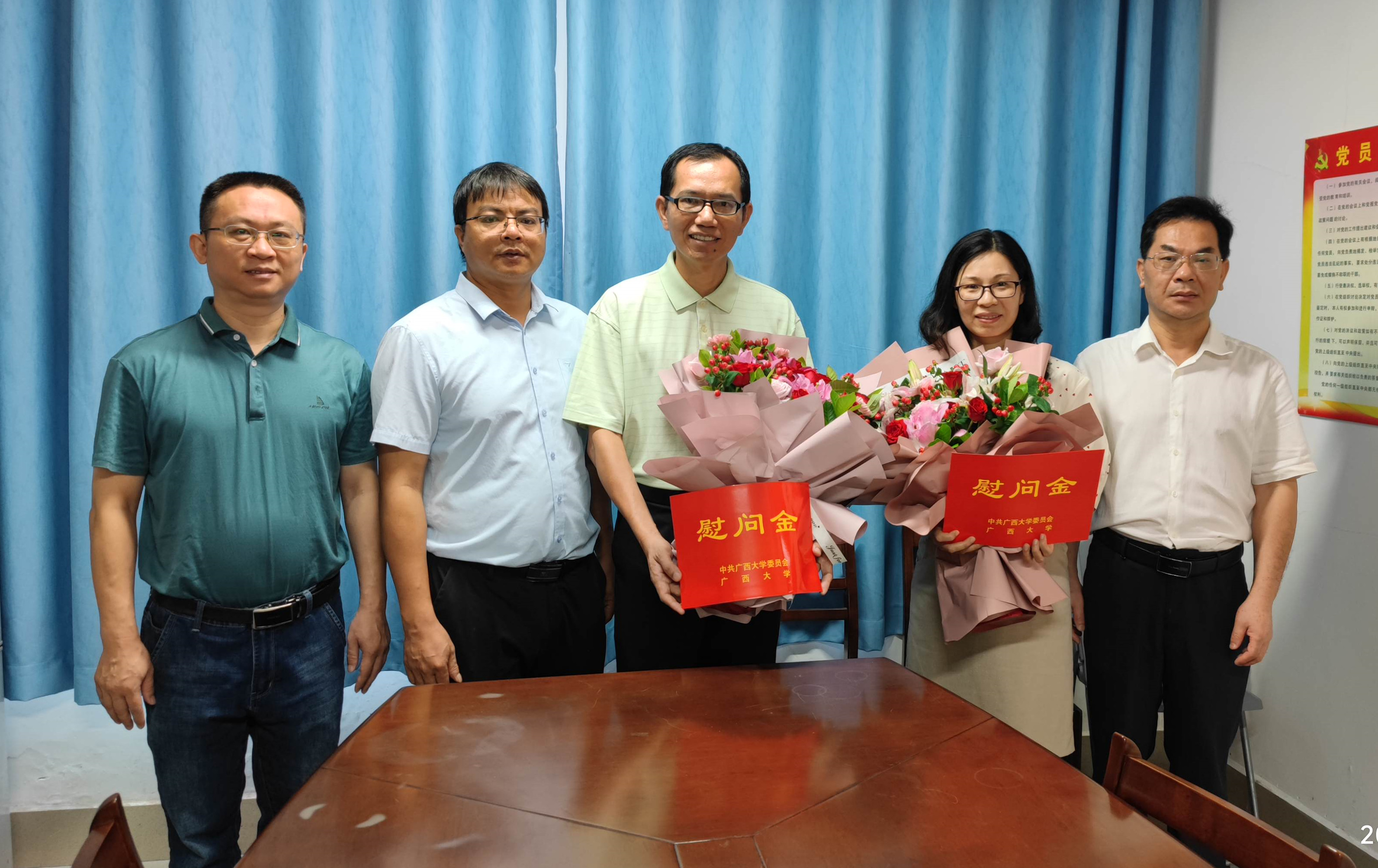 2022年9月9日上午,韩漫 在学院207会议室举行2022年教师节慰问活动,受学校领导的委托,学院党委书记钟诚、 党委副书记邓珍琪和副院长赵志刚慰问了学院教师代表李陶深、姚怡、韦巍三位老师,并通过他们向全院教师致以节日问候和美好祝愿。