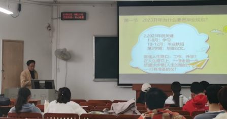 接着,覃华老师分别从2023开年为什么要做毕业规划、如何做毕业规划、如何实施毕业规划这三个方面分享了自己的独特见解。覃老师强调,2023年对同学们来说是非常关键的一年,同学们面临大学本科毕业后,是继续深造攻读研究生还是参加工作的选择,需要做好充分规划,“打有准备的仗”。就如何安排和实施毕业规划,覃老师表示每位同学应依据自己的喜好与特长,自觉、自律地走好每一步!
