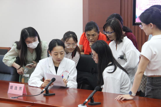 君武馆第二会议室开讲。广西医科大学附属肿瘤医院乳腺外科杨华伟主任、韦薇主任、姬逸男副主任、于滢华副主任、何英煜护士长、谢龙桂医师,韩漫