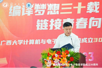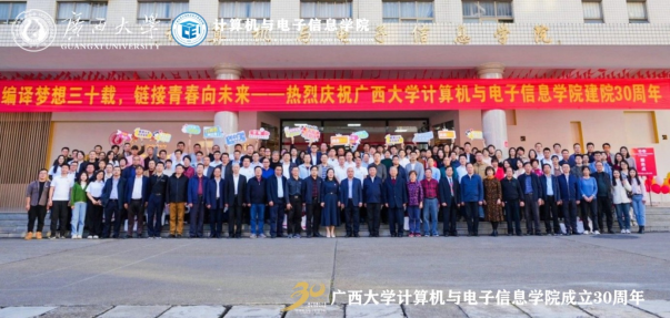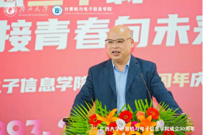 源于1993年原数学系的计算机软件专业与原电气工程系的计算机及应用专业合并组建的计算机科学系。学院坚持立德树人根本任务,以科技创新为动力,以服务社会为己任,为广西乃至全国的计算机与电子信息领域培养了大量的优秀人才。学院在学科建设、师资队伍、科研成果、社会服务等方面取得了显著成绩,为推动地方经济和行业发展作出了积极贡献。站在新的历史起点上,希望学院传承和发扬优良的办学传统,深入学习贯彻党的二十大精神,坚持用习近平新时代中国特色社会主义思想铸魂育人;希望学院加快学科内涵发展,在学科平台、人才队伍、研究方向、社会服务等方面加强规划和凝练特色,不断提升第三方学科评价结果;希望学院加强国际交流与合作,拓展国际视野,积极开拓与东盟国家高校在人才培养、科研合作等方面的交流合作,推进建设服务面向东盟开放合作的人才培养基地,为推动“一带一路”和中国-东盟战略伙伴关系作出贡献。