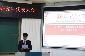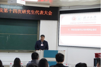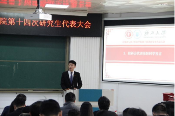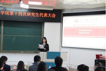 第十四次研究生代表大会在学院214报告厅召开。学院党委副书记邓珍琪老师、团委书记杨洋老师、团委副书记李易明老师、研究生办公室秘书胡亮青老师、辅导员张星月和林文潮老师,以及学校、兄弟学院研究生会代表和学院研究生代表出席本次会议。