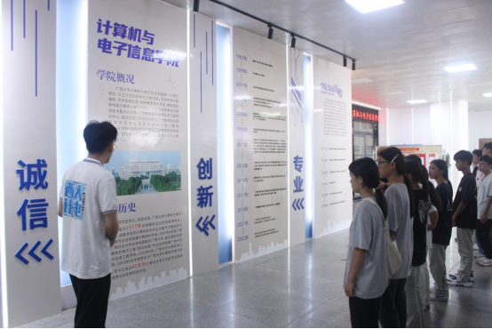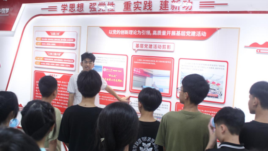 王泽远(左一)同学介绍学院发展历程