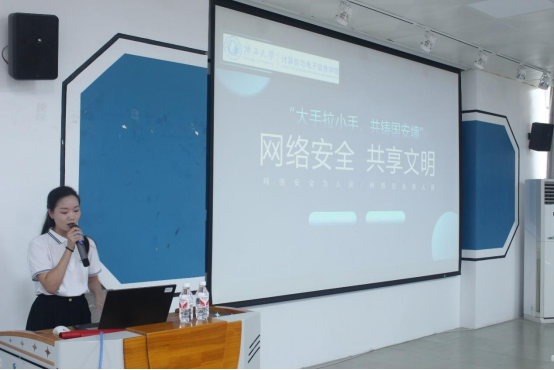 2023级计算机技术研究生陆满替同学开展《网络安全 共享文明》的理论宣讲。陆满替同学用简单明了的语言,由浅入深对网络安全的概念、网络安全的法律法规、以及网络中防骗的小技巧逐一介绍。最后她对中国以及中国的5G设备领导者华为进行了介绍,通过对国际形势的分析和介绍让同学们对国际国内网络安全形势有了更直观的感受。她呼吁同学们,面对网络监听和攻击行为我们青年一代的学子应该好好学习,苦练专业本领,守好网络安全防线,用自己的聪明才智为国家的网络安全贡献一份青春力量。