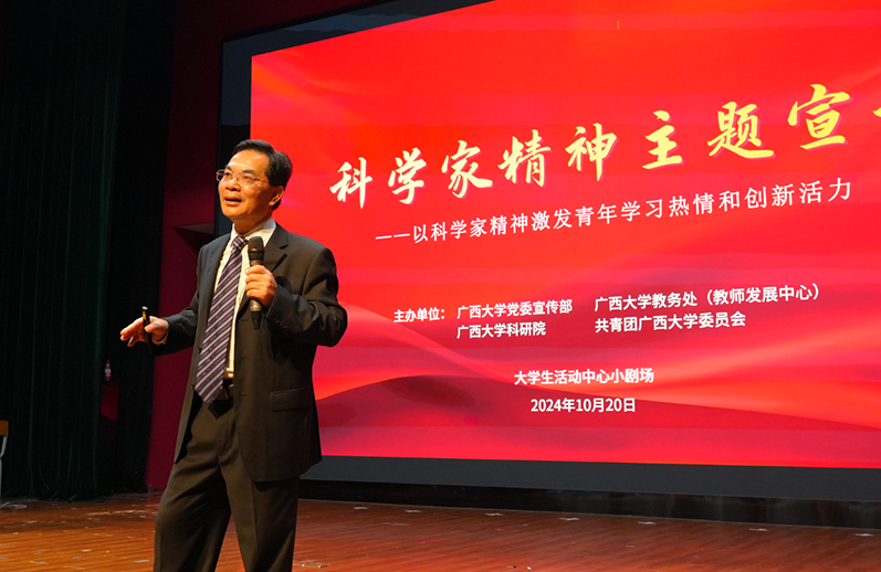 二级教授,博士生导师,国家高性能计算中心南宁分中心主任,广西科学家精神宣讲团成员钟诚,为同学们讲述科学家精神的核心内涵及其对青年学生的重要意义。
