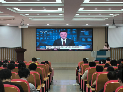 于10月14日下午在学院214报告厅召开2021级本科生年级大会暨就业动员大会。2021级全体本科生、班主任、辅导员和教学办老师共400余人参加。本次会议由2021级年级辅导员张星月老师主持。