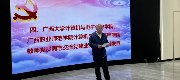 党委书记赵进创同志,广西职业师范学院计算机与信息工程学院党委书记赵域同志,以及两个党支部的党员参加活动,共同探讨如何在新时代背景下,通过党建引领教育事业的高质量发展。