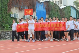 伴随着激昂的乐声,各班方块队依次入场,步伐整齐、意气风发。他们喊出的口号既彰显学院特色,也融入了专业智慧与青春创意。