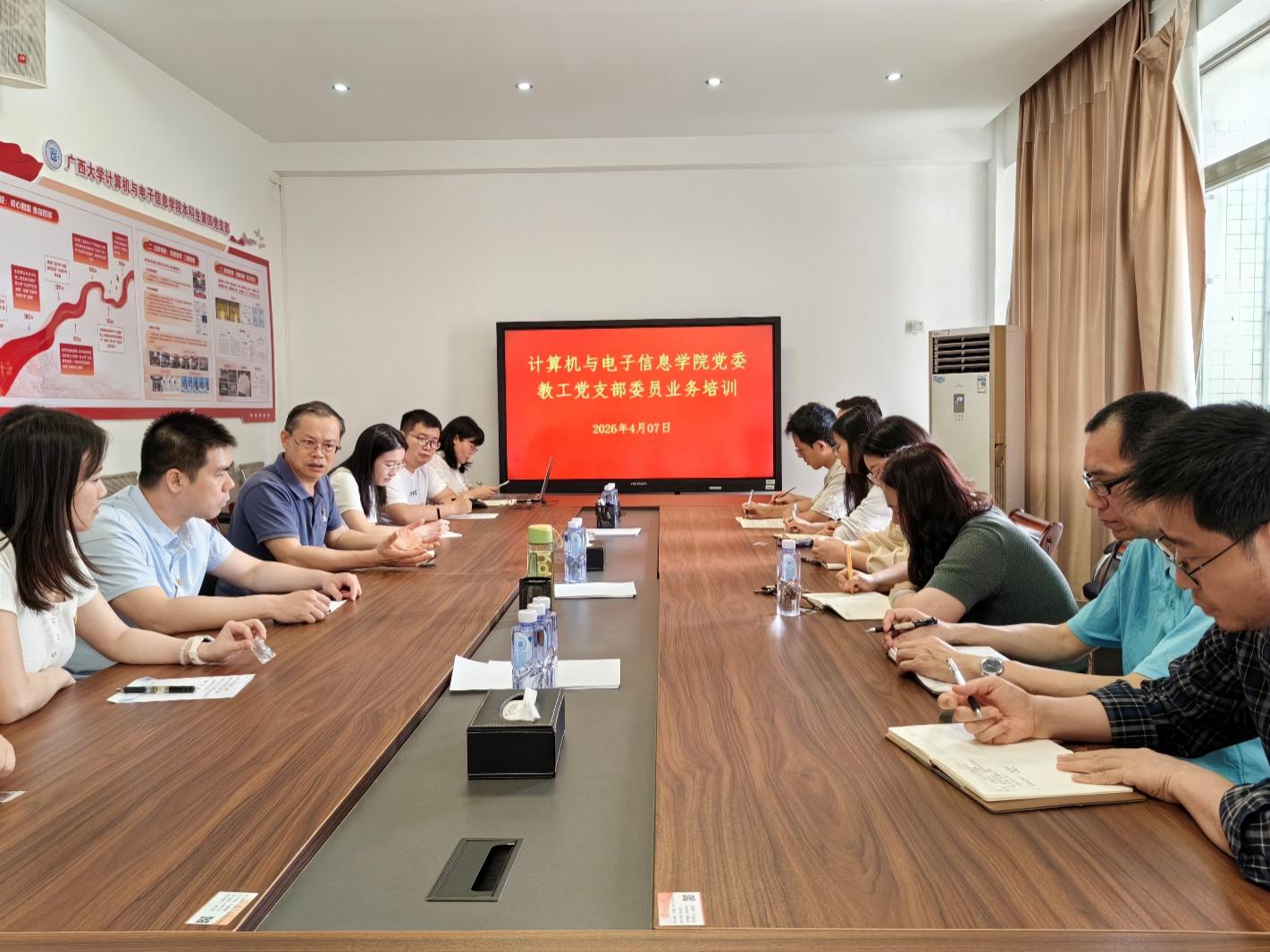 为深入贯彻落实新时代党的建设总要求,全面提升党支部委员履职能力,推动学院党建工作与事业发展深度融合、同频共振,4 月 7 日,韩漫 党委在 213 会议室组织召开教工党支部委员业务培训会。学院全体教工党支部书记、委员以及专职组织员参会,学院党委书记赵进创主持会议并讲话。 会上,赵进创书记围绕支部建设与业务发展深度融合作重点强调。他指出,各教工党支部要充分发挥 “双带头人” 支部书记全覆盖的核心优势,紧密团结支部全体党员与全院教师,凝聚攻坚克难的强大合力,聚焦教学科研、教材建设、课程思政建设等核心业务领域,持续探索新路径、实现新突破,以高质量党建引领业务高质量发展,着力打造具有学院特色的党建工作品牌。 学院党委专职组织员薛金凤结合各教工党支部工作实际,开展针对性业务指导。她从规范党支部活动开展、深化党建与业务融合路径等方面进行系统讲解,同时就各支部扎实开展树立和践行正确政绩观学习教育,从目标要求、实施步骤、重点举措等方面给出具体指导,内容详实、指导性强,为各支部后续工作开展提供了清晰指引。 此次培训内容系统全面、重点突出,具有极强的实践指导意义。参训的支部委员纷纷表示,将把本次培训所学所悟转化为履职尽责的实际行动,以更高标准、更实举措推进党支部标准化规范化建设,推动支部工作全面提质增效,为学院事业高质量发展筑牢基层党建根基。 文:李继 图:李继 一审一校:薛金凤 二审二校:夏士岚 三审三校:赵进创