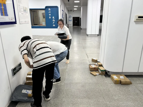 2024年5月29日晚上,计算机与电子信息学院研究生第一党支部在学院一楼组织开展志愿活动,在爱心驿站分类整理快递。