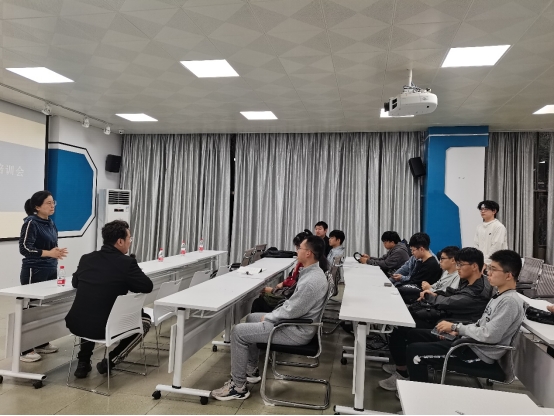 At the beginning of the meeting, Mr. Dong started the training on "What is the Challenge Cup", which made students have a preliminary understanding of the "Challenge Cup", and then introduced the "Challenge Cup" competition process to the students in detail to help them better understand the competition. Then he introduced the process of this year's "Challenge Cup" to the students in detail to help them better understand the competition. During the training process, Mr. Dong gave students professional and detailed training on project selection, declaration writing, report and defense, and gave reasonable suggestions on how to polish the business plan.