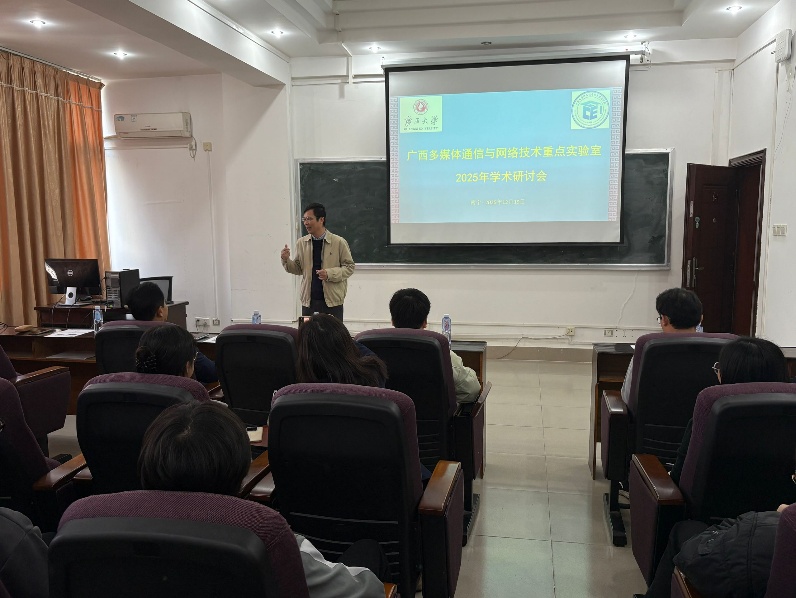 2025年12月19日,广西多媒体通信与网络技术重点实验室2025年学术研讨会在广西大学计算机与电子信息学院601教室举行。