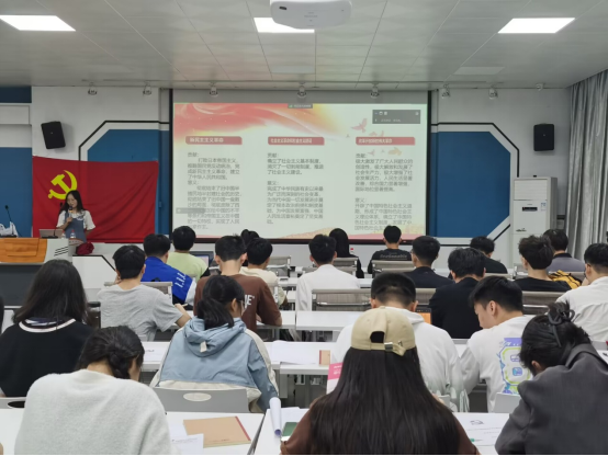 本科生第四党支部 “思想旗帜引领伟大征程” 主题党日活动在学院一楼报告厅举行,本次活动由党支部书记杨洋同志主持,党支部党员同志40人参加。