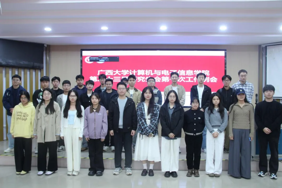 为进一步加强学院研究生会工作,进一步提升学院研究生日常事务服务与管理水平,2025年11月20日下午,广西大学计算机与电子信息学院研究生会第一次工作例会在学院214报告厅顺利举办。学院辅导员林文潮老师及研究生会全体成员出席此次会议,会议由研究生会主席团成员覃小洁主持。