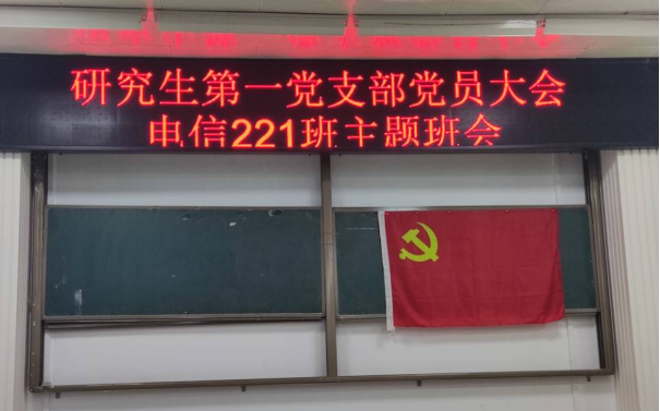 2022年9月27日,研究生第一党支部与本科生电信221班共同组织开展主题党日和主题班会。研究生第一党支部全体党员和电信221班全体同学参加会议,会议由研究生第一党支部副书记刘春雨同学主持。